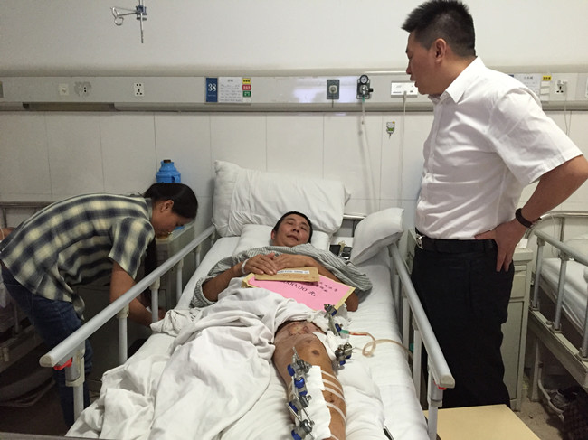 5月24日,云阳慈善会会长宋国权与正能量交友微信群群主、重庆元亨房地产开发有限责任公司总经理周刚一行前往万州三峡中心医院骨科看望关爱建卡贫困户意外受伤患者余斌,并送去慈善慰问金51000元,其中正能量交友微信群组织捐款46000元。
